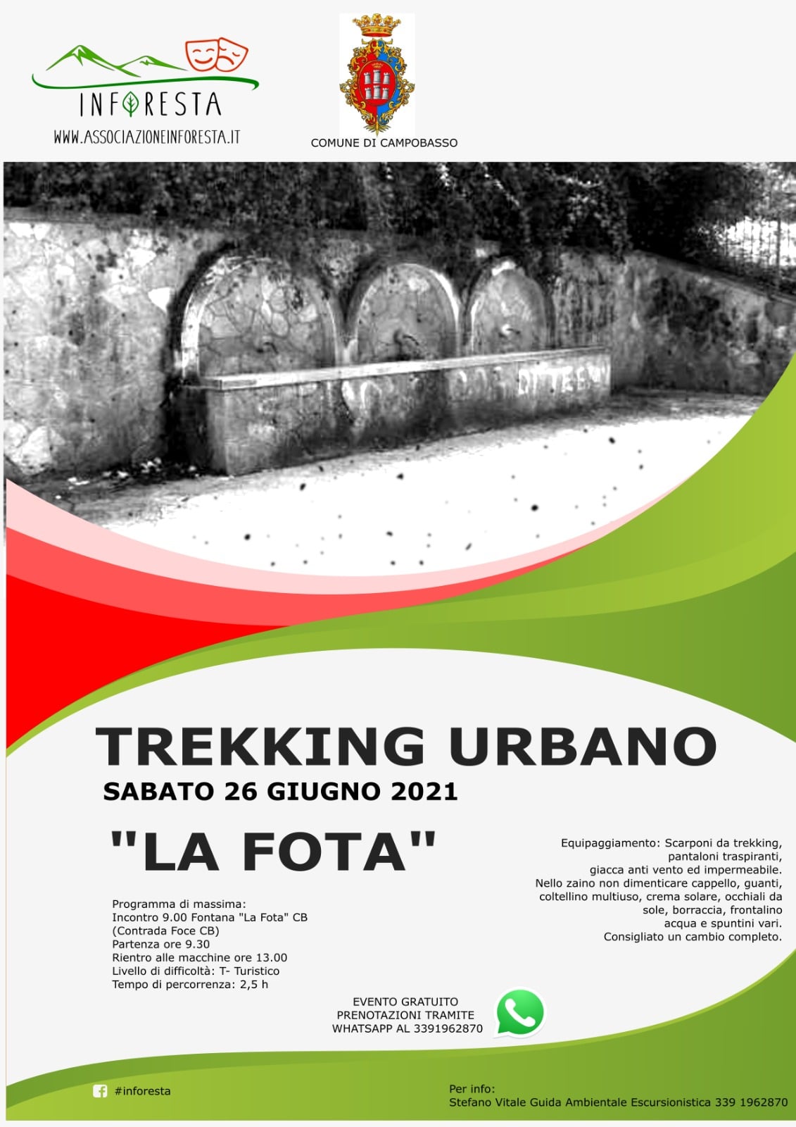 CAMPOBASSO – Tornano gli appuntamenti con il trekking urbano organizzati dal Comune di Campobasso insieme all’Associazione Inforesta e inseriti nel cartellone degli eventi di “Giugno in Città” stilato dall’assessorato alla Cultura.