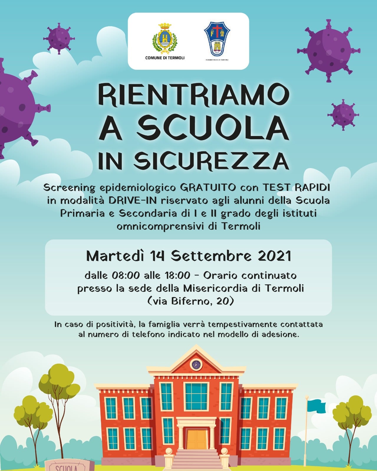 TERMOLI – In occasione della riapertura delle scuole l’amministrazione comunale in collaborazione con la Misericordia ha organizzato lo screening epidemilogico gratuito su base volontaria “Rientriamo a scuola in sicurezza”.
