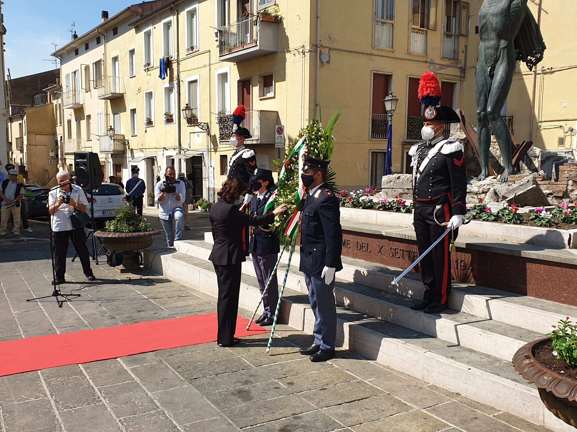 Al termine, in piazza X Settembre, si è proceduto alla deposizione, da parte del prefetto Gabriella Faramondi e del sindaco Giacomo d’Apollonio, di due corone d’alloro ai piedi del monumento alle vittime dei bombardamenti del 1943.