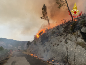 Capire perchè gli incendi si sono sviluppati è semplice. Da una parte c’è la mancanza di precipitazioni. E’ da maggio che il terreno non riceve la giusta quantità d’acqua e la terra è secca. Se a questo uniamo lo stato di abbandono di parte delle nostre colline, è facile capire perchè i pompieri sono dovuti intervenire a tutta velocità. Basta una sigaretta accesa lanciata per sbaglio sui rovi secchi o sulla sterpaglia per scatenare l’incendio. Oppure l’incendio acceso per eliminare sterpi secchi che poi è scappato al controllo. Chissà. Comunque sia mezzi e uomini dei Vigili del fuoco sono riusciti a circoscrivere l’incendio facendo in modo che non raggiungesse campi coltivati e abitazioni. Bravi.