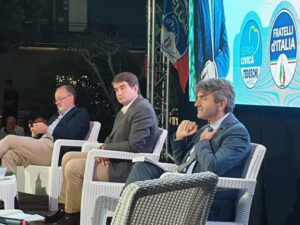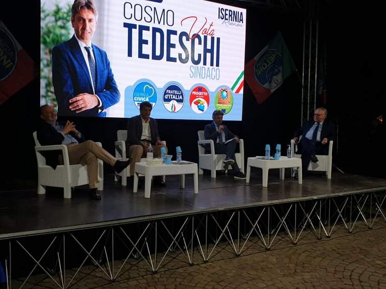 Sul palco, con Fitto, c’erano il coordinatore regionale di FDI Filoteo Di Sandro, il sen. Michele Iorio, il candidato sindaco al Comune di Isernia sostenuto dalla lista FDI Cosmo Tedeschi.