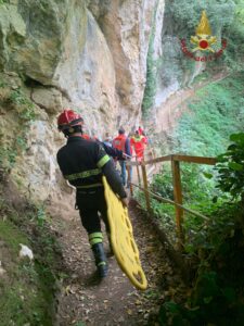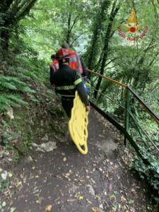 L’escursionista, colta da malore, è stata trasportata in barella dai VF fino al punto d’incontro col personale sanitario che l’ha poi trasportata in ospedale.