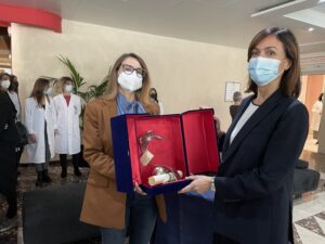 In segno di riconoscimento per l’impegno profuso nella promozione della ricerca e dell’innovazione quale leva per lo sviluppo del Mezzogiorno, al ministro Carfagna è stato consegnato il riconoscimento “One health One future”, un’opera realizzata da uno scultore molisano“.