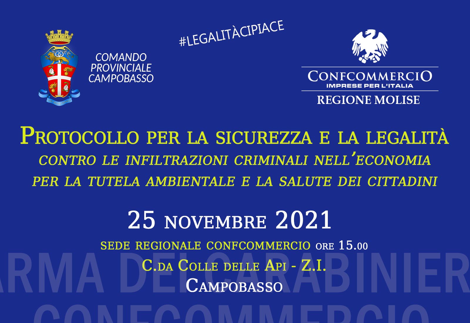 Il 25 novembre a Campobasso, nella sede regionale di Confcommercio Molise alle ore 15.00, il Comandante provinciale dell’Arma dei Carabinieri, Colonnello Alessandro Minnilli e il Presidente Confcommercio, Paolo Spina, terranno un incontro pubblico per illustrare il protocollo di intesa nazionale che sancisce la reciproca collaborazione nello sviluppo della cultura della legalità e della sicurezza.
