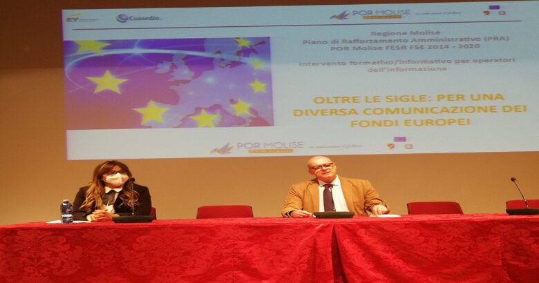 La tematica è stata affrontata questa mattina, presso l’auditorium di Palazzo Gil a Campobasso, nel corso di “Oltre le sigle: per una diversa comunicazione dei fondi europei”, evento formativo e informativo promosso da Regione Molise e Ordine dei giornalisti del Molise, rivolto a giornalisti, operatori locali della comunicazione, dirigenti e funzionari regionali, decisori e attori locali.