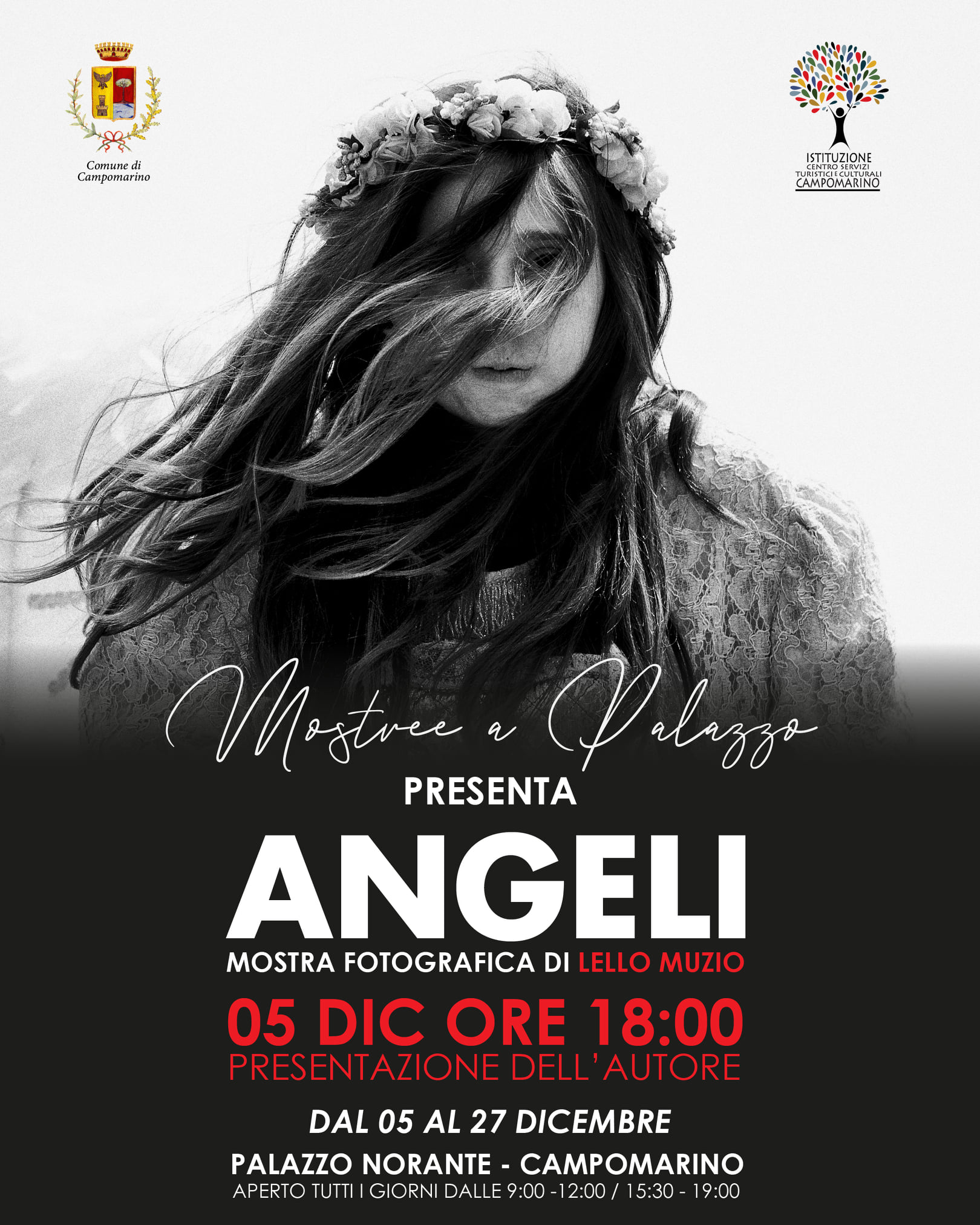 Attraverso la tecnica del bianco e nero, gli angeli emergeranno nell’affascinante atmosfera di Palazzo Norante, sfuggendo alla tela colorata della tradizione religiosa e della ritualità popolare. Un’esperienza unica, un incontro suggestivo di forme, spazi e colori in un’ambientazione ammaliante.