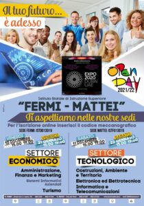 L’Open Day sarà riproposto anche venerdì 21 gennaio 2022 (sede Fermi) e sabato 22 gennaio 2022 (sede Mattei).