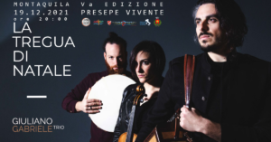 Domenica 19, la chiusura della manifestazione sarà affidata al Giuliano Gabriele Trio che, a partire dalle ore 20, accompagnerà il pubblico nella storia della “Tregua di Natale”, uno spettacolo musicale liberamente ispirato ad un fatto accaduto nel dicembre 1914, durante la Prima Guerra Mondiale. Lungo il fronte occidentale, fra le truppe tedesche e britanniche schierate nelle trincee, avvennero una serie di “cessate il fuoco” non ufficiali durante i quali i soldati presero a scambiarsi auguri, canti e doni, incontrandosi nella terra di nessuno.