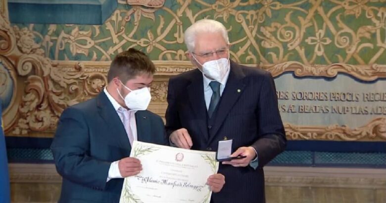 “Sono ancora emozionantissimo. Grazie Presidente per questo prestigioso riconoscimento di Alfiere della Repubblica“. Queste le parole di Alessio scritte in un post su Facebook.
