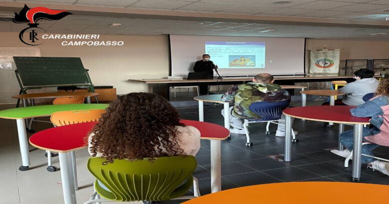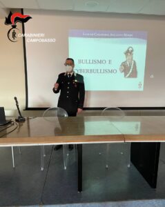 In Termoli, il Comandante della locale Compagnia Carabinieri Maggiore Alessandro Vergine ha incontrato in 3 sessioni, nel pieno rispetto della vigente normativa in materia di “Covid-19”, complessivamente 150 studenti delle 5^ classi della scuola secondaria IPSEOA “Federico di Svevia” con sede in questa via Foce dell’Angelo.