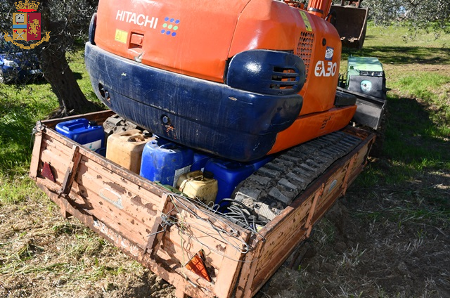 Ricevuta la segnalazione, la volante del Commissariato, in servizio di pattugliamento del territorio, anche rurale, ha immediatamente intercettato i ladri che, vistisi braccati, sono stati costretti ad abbandonare il trattore ed il resto della refurtiva per darsi alla fuga.