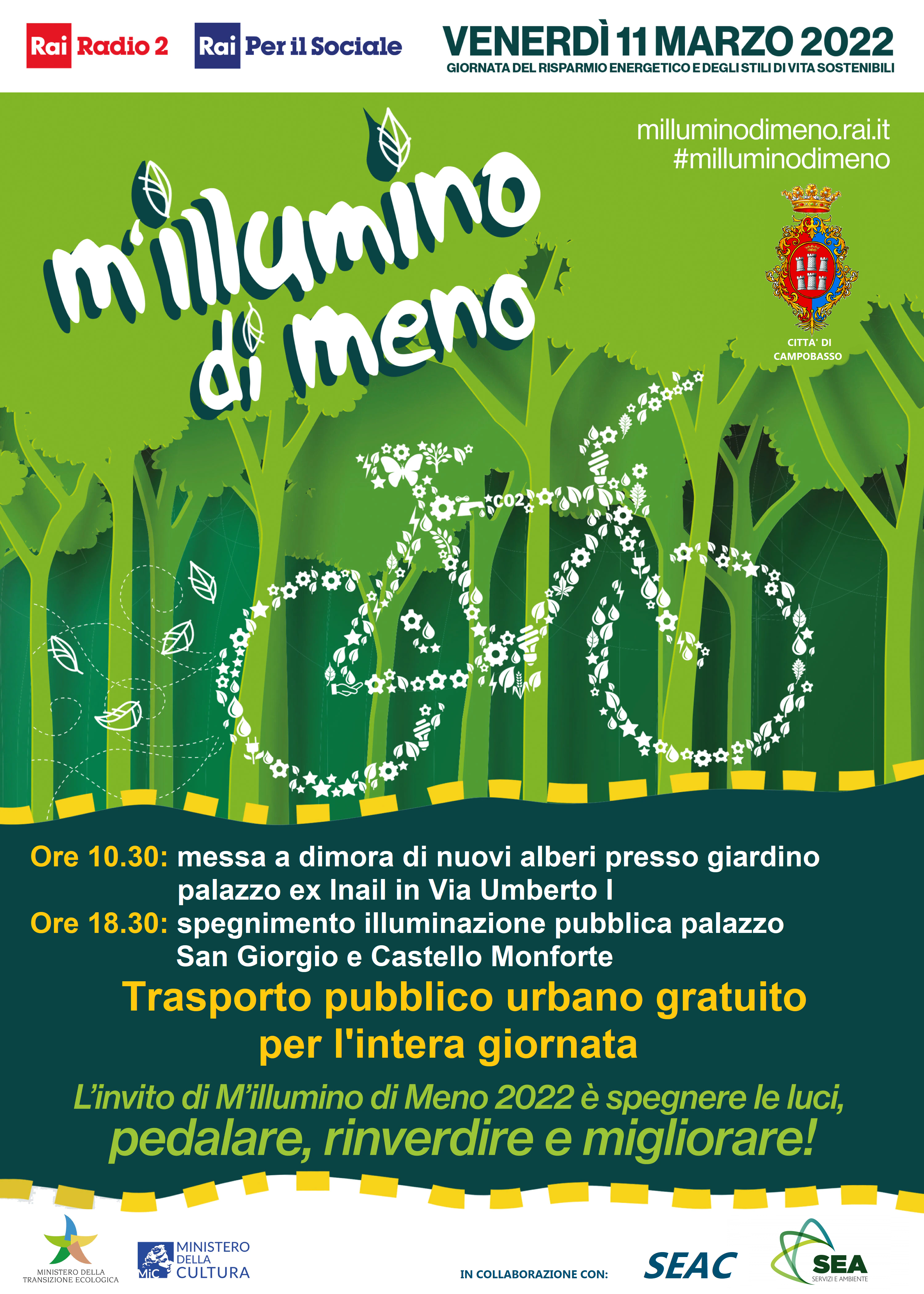 CAMPOBASSO – Il Comune di Campobasso aderisce alla campagna radiofonica M’illumino di Meno prevista per venerdì 11 marzo 2022.