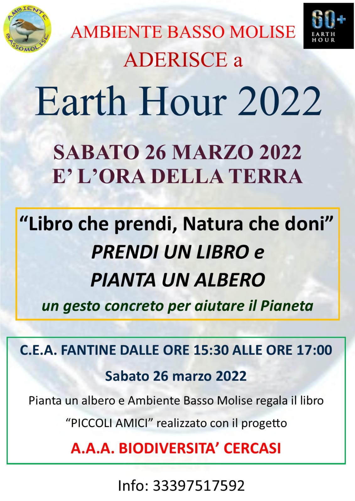 CAMPOMARINO – La lotta ai cambiamenti climatici rappresenta una priorità per Ambiente Basso Molise che aderisce a Earth Hour 2022 promuovendo al contempo un evento solidale, incentrato sulla tutela della natura e sulla biodiversità.
