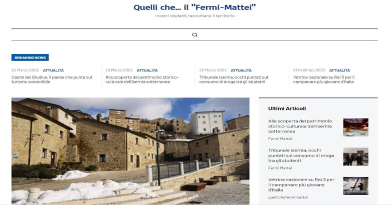 Consentire agli studenti dell’Isis Fermi-Mattei di Isernia di promuovere le notizie che hanno la propria scuola per protagonista. Raccontare il territorio. Confrontarsi con le problematiche che caratterizzano l’adolescenza, dal bullismo all’uso consapevole del web e dei social network. Con questo spirito nasce il blog «Quelli che… il Fermi-Mattei», un vero e proprio giornale scolastico online creato grazie al P.O.N. “Comunichiamo e socializziamo attraverso i media”, coordinato da Sergio Di Vincenzo e Tina Policella.