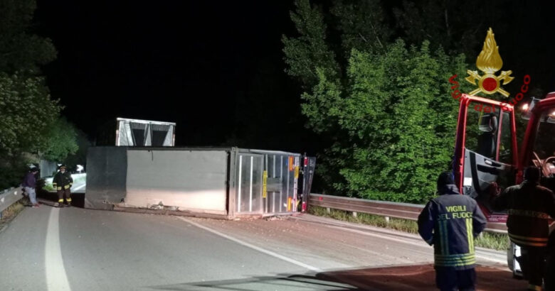 BIFERNIA – Un tir carico di pollame si è ribaltato nella notte al chilometro 39 per cause in corso di accertamento.