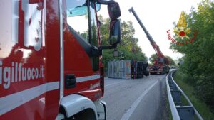 Nella notte – si legge in una nota diffusa dai VVF -, al km 39 circa della SS Bifernina, per cause in corso di accertamento, un Tir adibito al trasporto di pollame si è ribaltato. Nessun ferito e strada chiusa al transito per il tempo necessario al recupero del carico e la successiva rimozione dell’ automezzo. Operazioni ancora in corso con personale ed autogrù intervenuti dal comando Vigili del fuoco del Comando di Isernia e strada ancora chiusa al traffico.