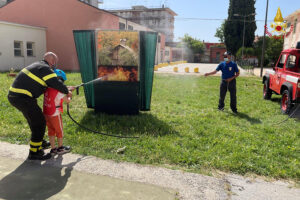 Circa 120 bambini e ragazzi dell‘Istituto Comprensivo “Leopoldo Pilla” di Venafro – si legge in una nota diffusa dai VVF – , hanno partecipato nella giornata del 24 maggio, ad una mini Pompieropoli, la conosciutissima manifestazione dei Vigili del Fuoco a cui hanno partecipato gli uomini e i mezzi del distaccamento volontario di Venafro, personale di ausilio del Comando dei Vigili del Fuoco di Isernia e gli appartenenti alle sezioni dell’Associazione Nazionale dei Vigili del Fuoco di Isernia e di Campobasso. Nel cortile interno della scuola, è stata allestito un percorso ad ostacoli in cui veniva simulato un intervento e  che simulava un intervento i ragazzi, a piccoli gruppi, hanno affrontato con grande gioia i percorsi ed hanno ascoltato con grande attenzione il personale durante l’illustrazione dei mezzi di soccorso e delle attrezzature“.