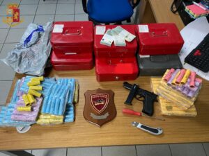 All’esterno dell’edificio, gli agenti hanno rinvenuto una busta trasparente contenente rotolini di monete. Anche nell’androne dello stesso, dietro il portone di ingresso, era occultata una busta contenente altri rotolini di monete di vario taglio.