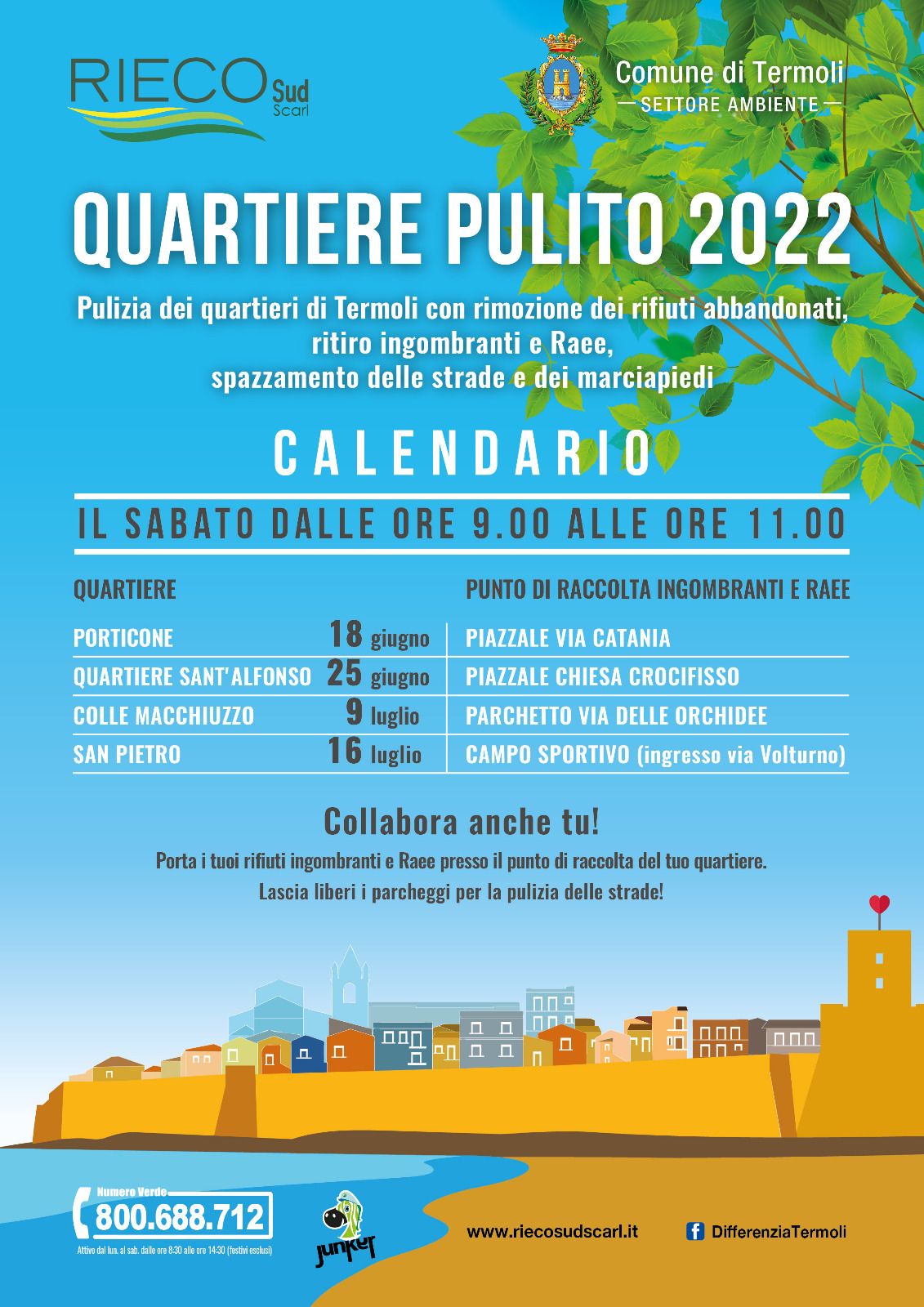 Il secondo appuntamento si terrà domani 25 giugno nel quartiere di Sant’Alfonso, il container verrà posizionato alle ore 9 fino alle ore 11 nel piazzale della chiesa Crocifisso; si richiede la massima collaborazione dei cittadini a non parcheggiare le auto lungo le vie principali per permettere una migliore pulizia delle strade e dei marciapiedi.