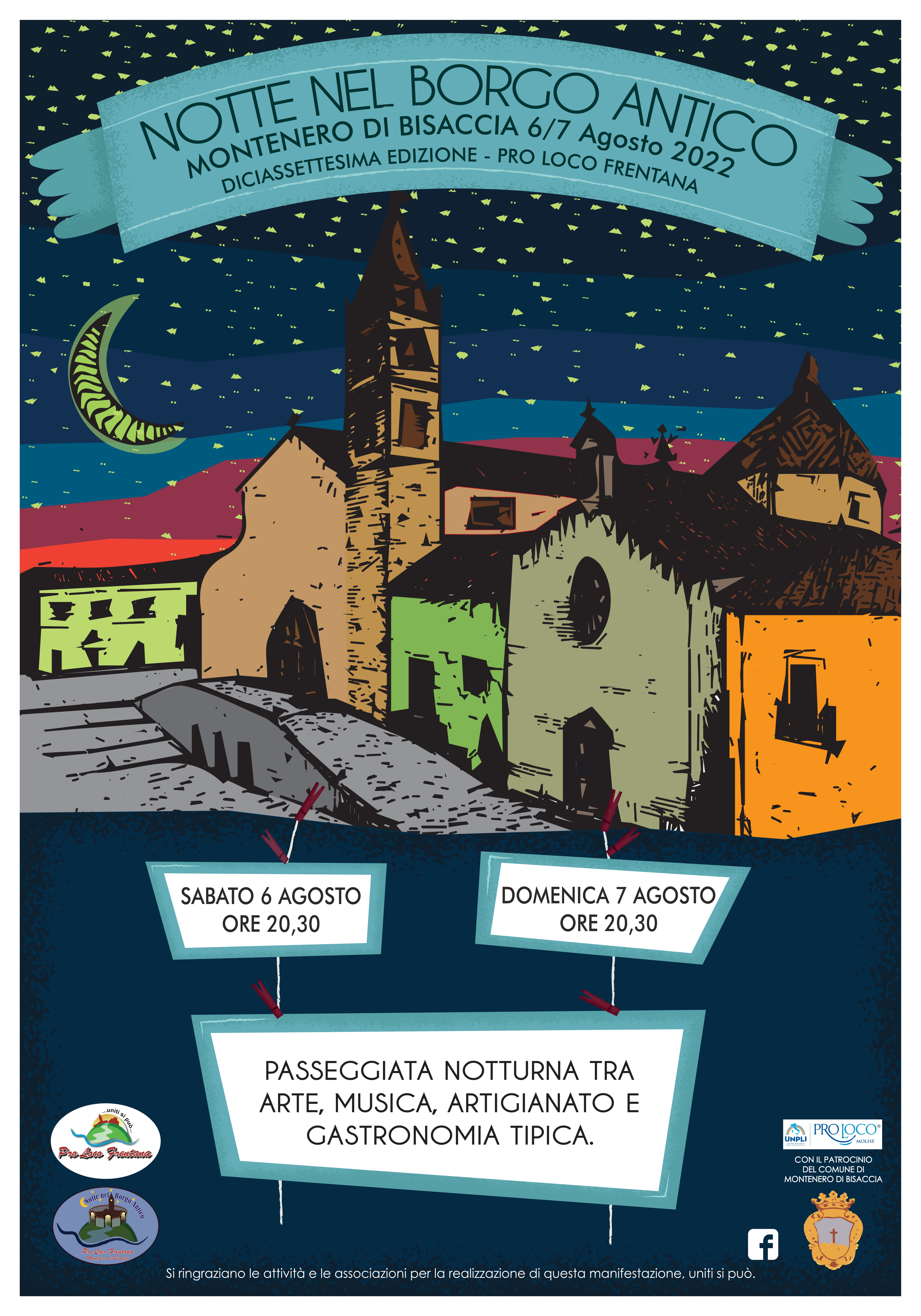 Torna puntuale anche quest’anno il tradizionale appuntamento con la Notte nel Borgo Antico, l’evento estivo giunto alla sua 17esima edizione, che si terrà Sabato 6 e domenica 7 agosto 2022, a partire dalle ore 20,30, organizzato dalla Pro Loco Frentana e patrocinato dal Comune di Montenero di Bisaccia.
