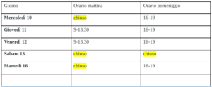 Questo il calendario delle aperture dell’infopoint della Sea in via Gazzani numero 35 a Campobasso: