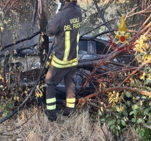 CRONACA – Auto esce fuori strada e prende fuoco, sul posto il 115