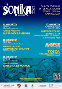 CAMPOBASSO – Tutto pronto per la V Edizione di Sonika Poietika che inizierà il suo cammino mercoledì 24 agosto a Sepino in Piazza Nerazio Prisco.