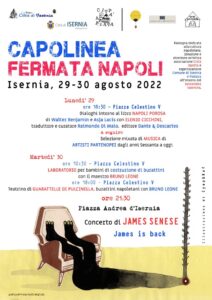 Martedì 30, in piazza Celestino V, alle ore 10:30, Laboratorio per bambini di costruzione di burattini con il maestro Bruno Leone. Alle 18:00, teatrino delle Guarattelle di Pulcinella, burattini napoletani con Bruno Leone. Alle ore 21:30, in piazza Andrea d’Isernia, concerto di James Senese.