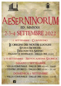 «AESERNINORUM MMXXII», che si terrà nei giorni 2-3-4 settembre e che comprende un convegno e una rievocazione storica riguardanti l’antico Sannio.