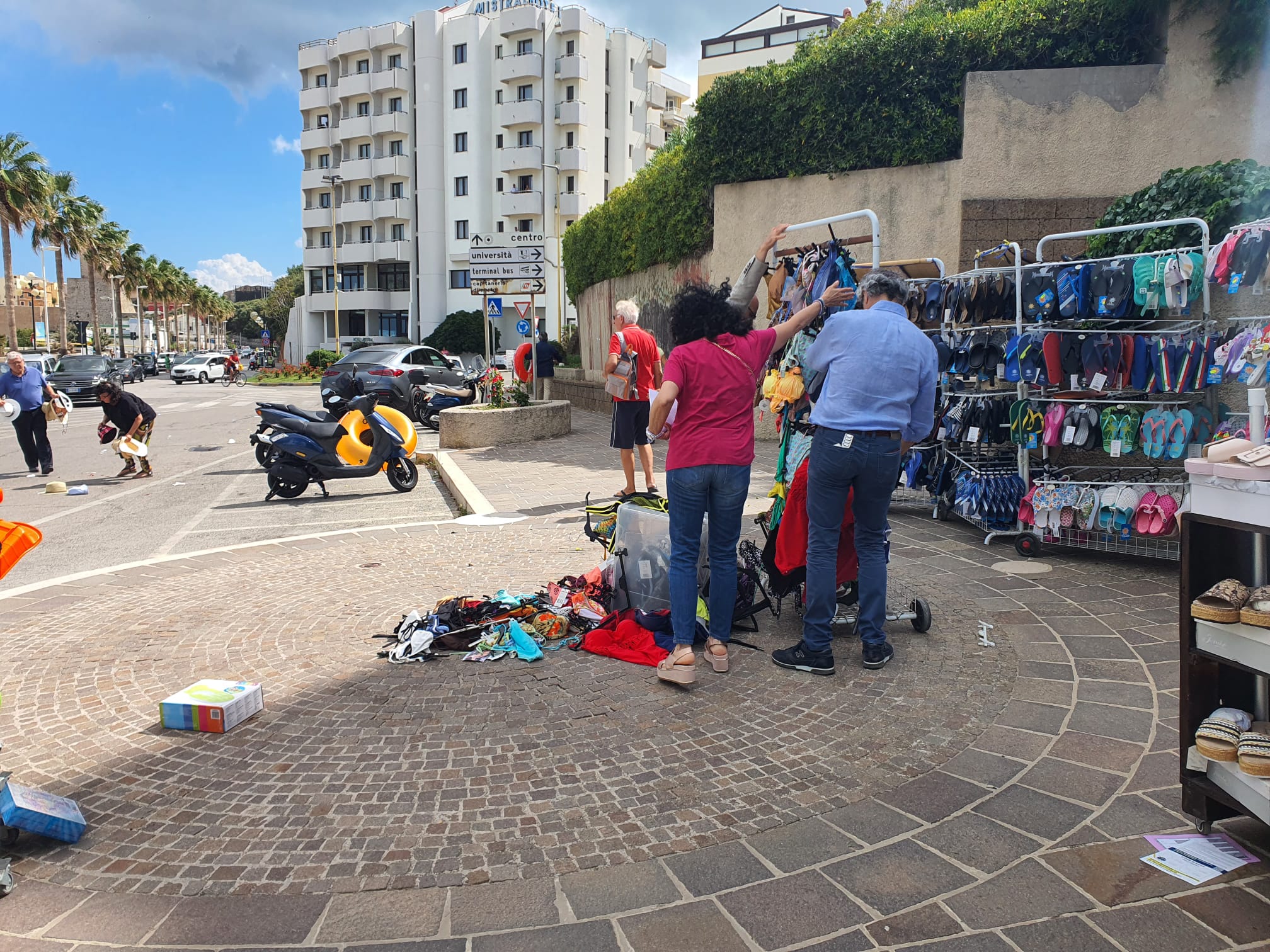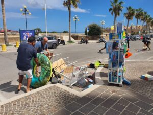 La tromba d’aria, di lieve entità, non ha causato particolari danni se non la caduta di qualche ombrellone, biciclette e del materiale allestito all’esterno delle attività presenti sul lungomare.