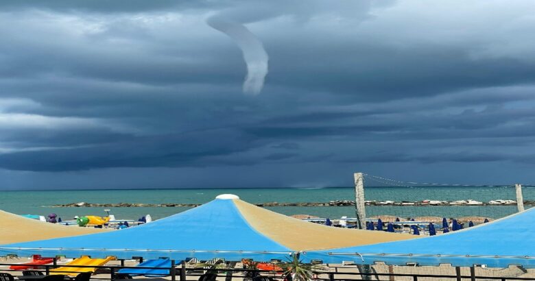 L’evento atmosferico si è verificato alle 12.35 ed ha messo in allarme i bagnanti e i gestori dei Lidi che hanno invitato i presenti ad abbandonare la spiaggia, causando un fuggi fuggi generale.