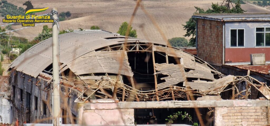 “Nell’ambito del piano di controllo del territorio finalizzato alla prevenzione e repressione dei traffici illeciti, militari del Reparto Operativo Aeronavale di Termoli, in collaborazione con personale dell’Agenzia Regionale Protezione Ambiente (ARPA) Molise, hanno concluso un’operazione di servizio a contrasto dei reati ambientali, sottoponendo a sequestro nel circondario del Comune di Ururi (CB) un’area, adibita a discarica abusiva, di mq. 5.200 circa e un capannone di mq 400, con tetto in eternit (fibrocemento a base di amianto) gravemente lesionato e in parte crollato”.