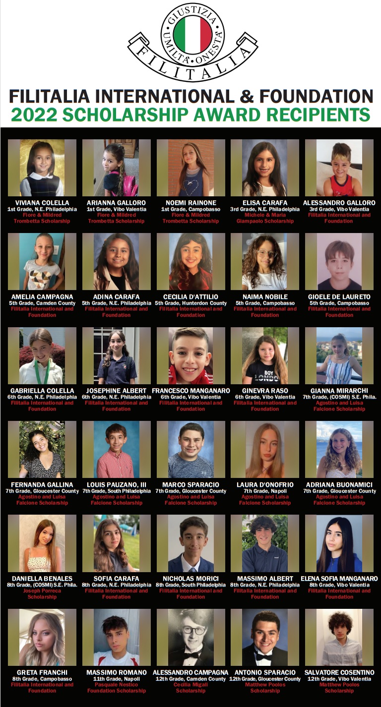 Il Chapter di Campobasso della Filitalia International esprime grande soddisfazione per i risultati raggiunti e si complimenta con i ragazzi che, attraverso i loro studi, hanno raggiunto un importante traguardo. La premiazione della Casa Madre ai borsisti usciti vincitori avvera’ oggi alle ore 17,30, mentre il chapter di Campobasso organizzerà nelle prossime settimane la cerimonia di premiazione che sarà ripetuta nella prossima festa della Filitalia che si svolge ogni anno a Campomarino nel mese di luglio.
