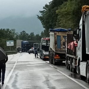 Traffico bloccato in entrambe le direzioni e dirottato sulla viabilità interna, con evidenti disagi per automobilisti.