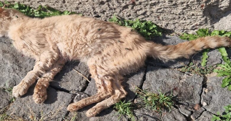 Un gatto morto e un altro gattino in fin di vita che lotta per salvarsi dal veterinario a causa del veleno sparso in piazza San Francesco e nelle strade circostanti.