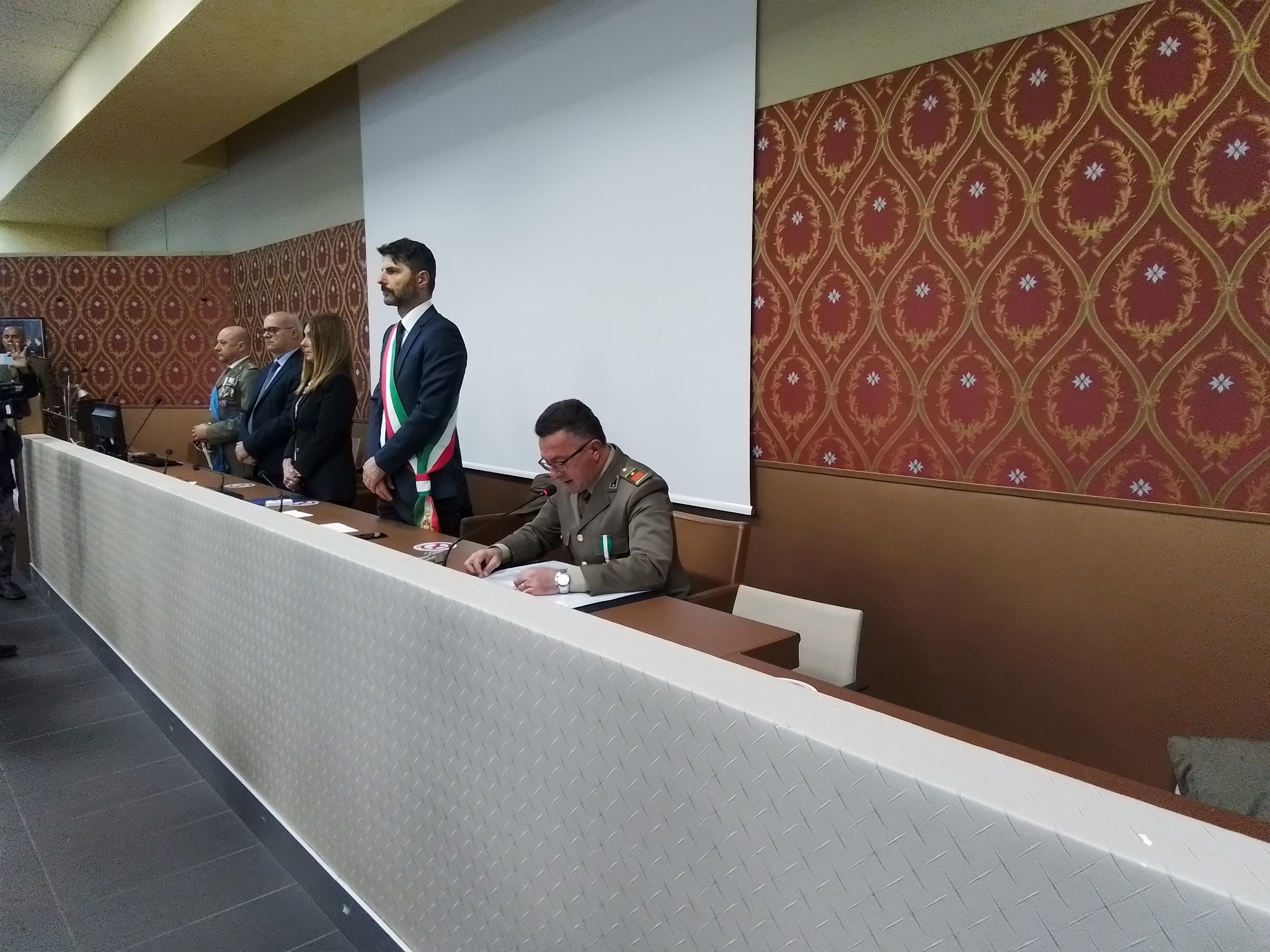 A seguire, vista la pioggia, ci si è spostati nella Sala della Costituzione, in Via Milano, dove il Cappellano Militare ha recitato la “Preghiera per la Patria” ed è stata data lettura, alla presenza del Viceprefetto Vicario, dott.ssa Elvira Nuzzolo, del messaggio ufficiale del Presidente della Repubblica, mentre, il Capo Ufficio Affari Territoriali Presidiari del Molise, Ten. Col. Ettore Piscicelli, ha letto il messaggio del Ministro della Difesa.