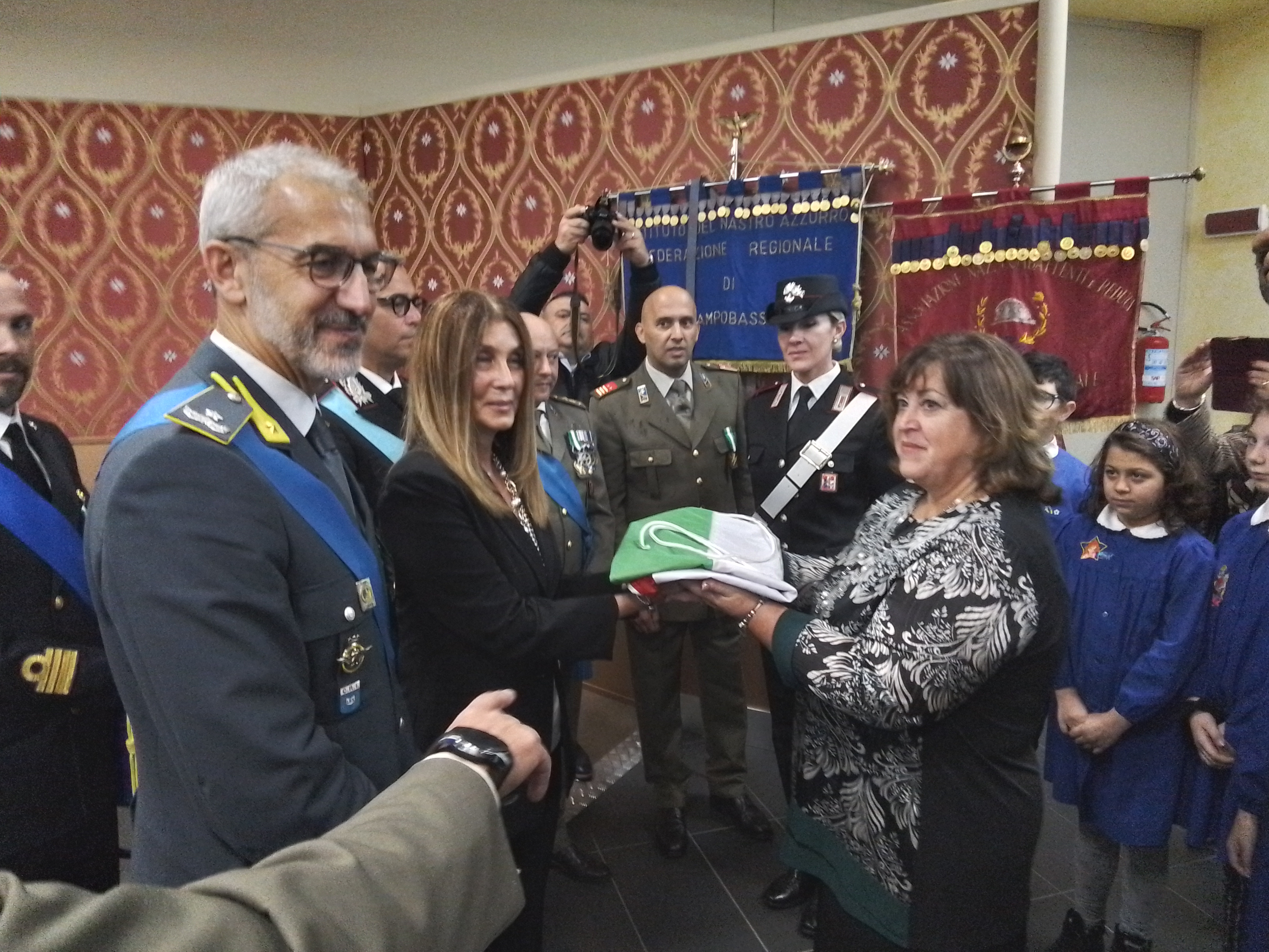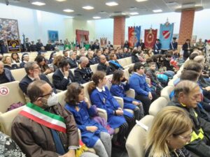La celebrazione nella Sala della Costituzione si è conclusa con la consegna della bandiera italiana agli alunni del plesso scolastico di Castropignano.