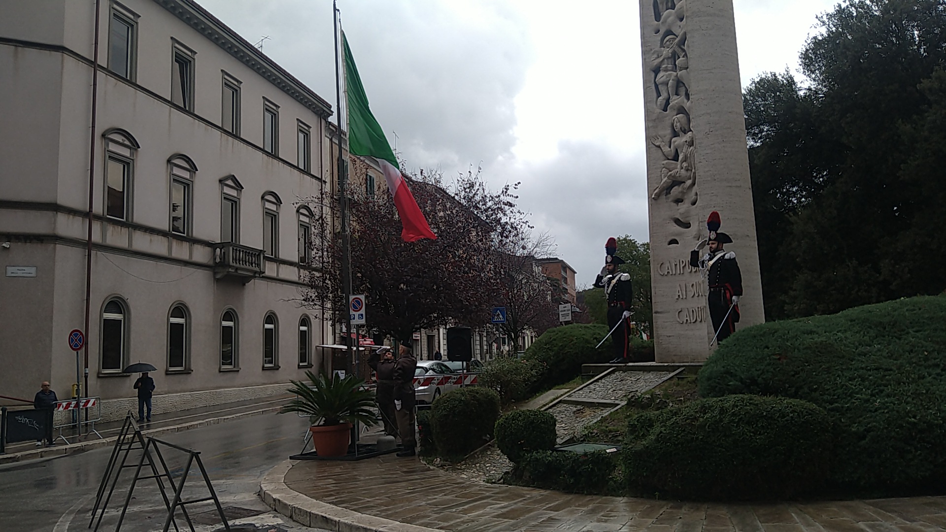 Il corteo, con i rappresentanti militari e istituzionali, è partito da Piazza Pepe per raggiungere Piazza della Vittoria, dove, presso il Monumento ai Caduti, la Cerimonia è entrata nel vivo con l’Alzabandiera solenne, gli Onori ai Caduti e le deposizioni delle corone d’alloro.