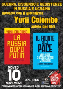 Se ne parlerà in un incontro con il giornalista YURII COLOMBO, giovedì 10 novembre alle ore 18 a Casa del Popolo.