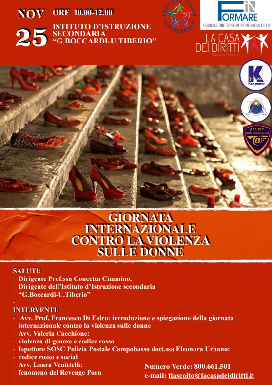 L’evento avrà luogo venerdì 25 novembre, alle ore 10, presso l’Istituto d’Istruzione Secondaria “Boccardi-Tiberio”, con la denominazione di “Conoscere per difendere”.