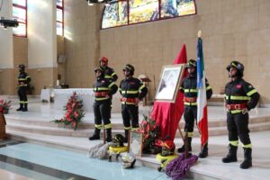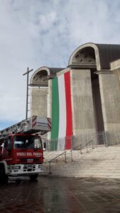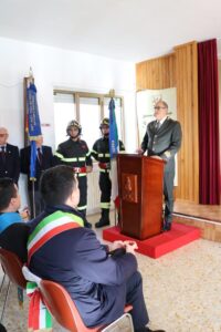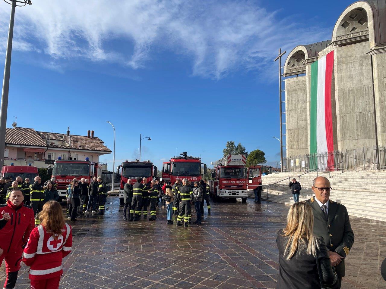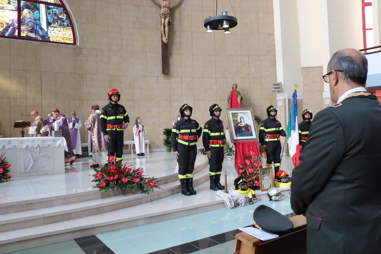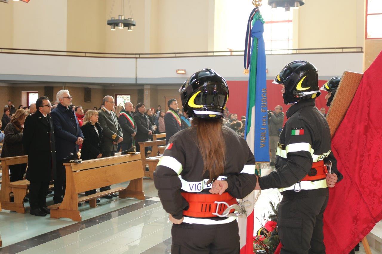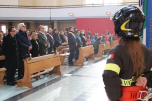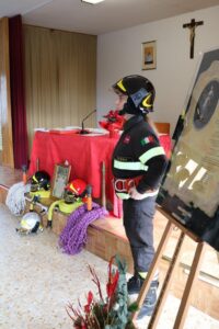 Preliminarmente alla Cerimonia sono state consegnate nella sala parrocchiale le benemerenze al personale Vigili del Fuoco e per l’occasione in Piazza Palmerini sono stati schierati i mezzi VVF.