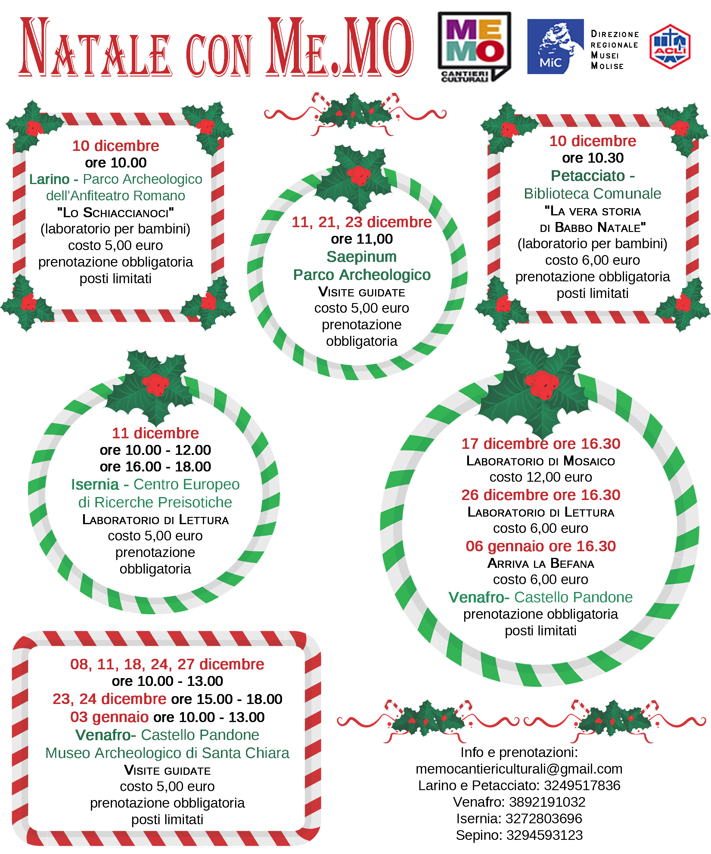 EVENTI – Attività natalizie organizzate dall’Associazione Me.MO Cantieri Culturali nei luoghi della cultura del Molise.