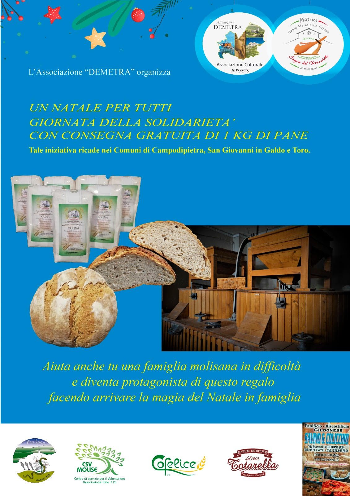 Il 20 e il 21 dicembre prossimi i volontari doneranno pagnotte di pane alle persone in difficoltà nei comuni di Toro, Campodipietra e San Giovanni in Galdo, grazie alla collaborazione delle amministrazioni locali e di alcune aziende che hanno sposato il progetto.