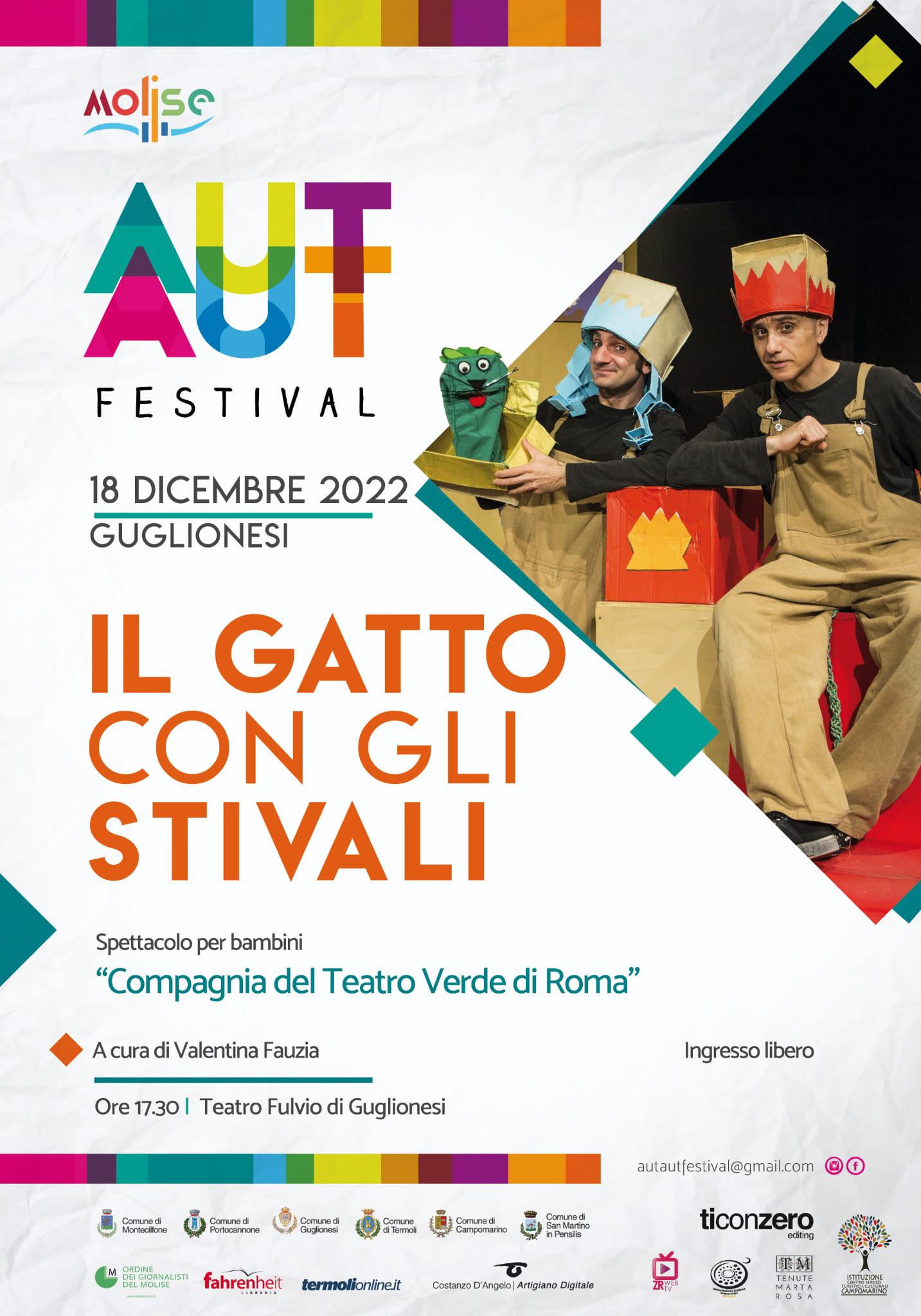 Domenica 18 dicembre 2022 alle 17.30 al Teatro Fulvio di Guglionesi si terrà lo spettacolo ‘Il gatto con gli stivali’ a cura della compagnia del Teatro Verde di Roma e dell’autore Andrea Calabretta.