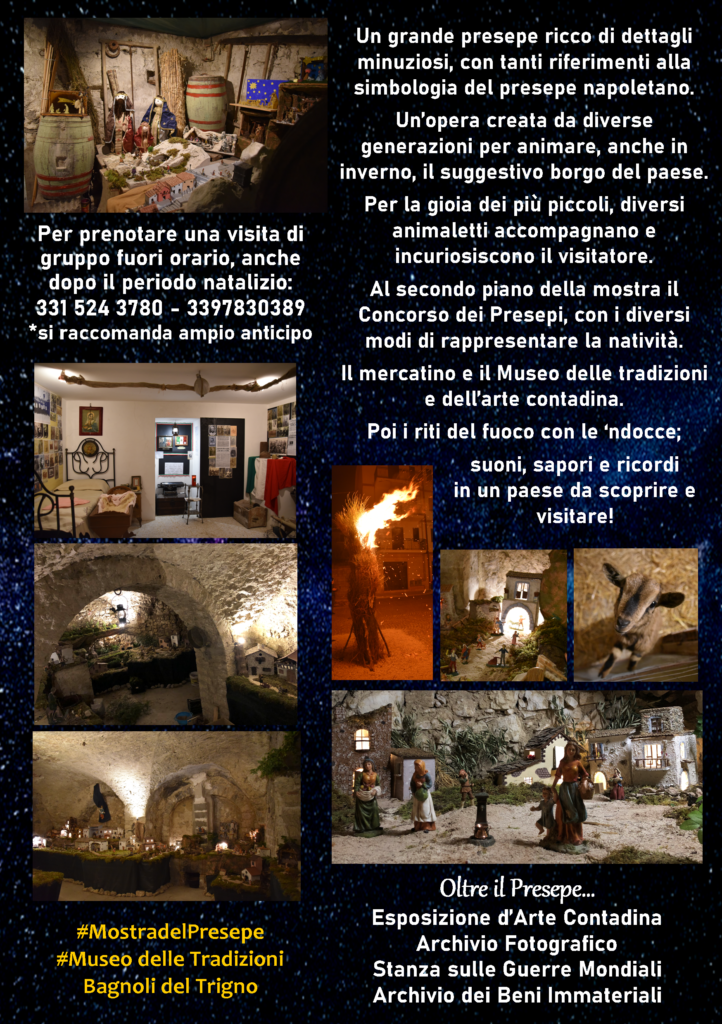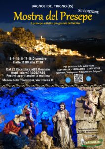 BAGNOLI DEL TRIGNO – Il presepe artistico, realizzato per il dodicesimo anno consecutivo, è aperto al pubblico dall’8 dicembre.