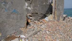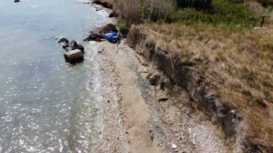 E’ evidente ormai che il mare sta consumando ampie porzioni di suolo, così come commentano le immagini nel servizio, creando uno scalino alto quasi un metro rispetto al piano del terreno che rende queste terre ormai inutili anche per le coltivazioni agricole (gli ultimi tentativi destinati alla produzione di asparagi) poiché il fenomeno della salinizzazione rende ormai inutile tali pratiche.