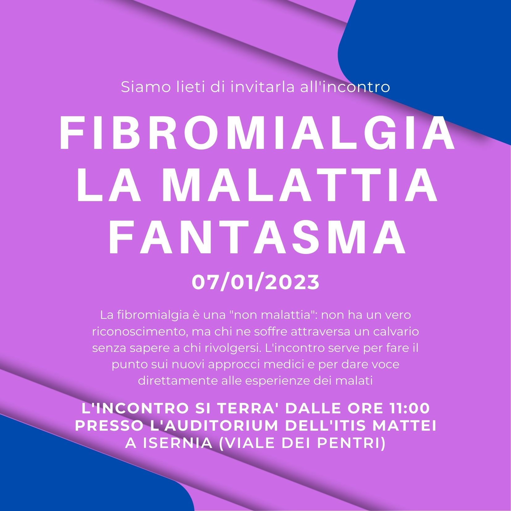 ISERNIA – Si terrà sabato 7 gennaio a partire dalle ore 11 presso l’Auditorium dell’Itis Mattei di Isernia un incontro per discutere di fibromialgia e di dolore cronico.