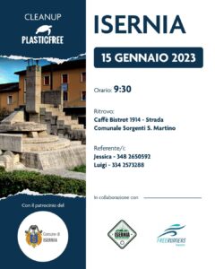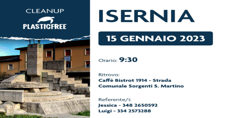 Potrete trovare ulteriori dettagli sulla prossima iniziativa collegandovi a questo sito internet della Associazione Plastic Free: https://www.plasticfreeonlus.it/eventi/3085/15-gen-isernia