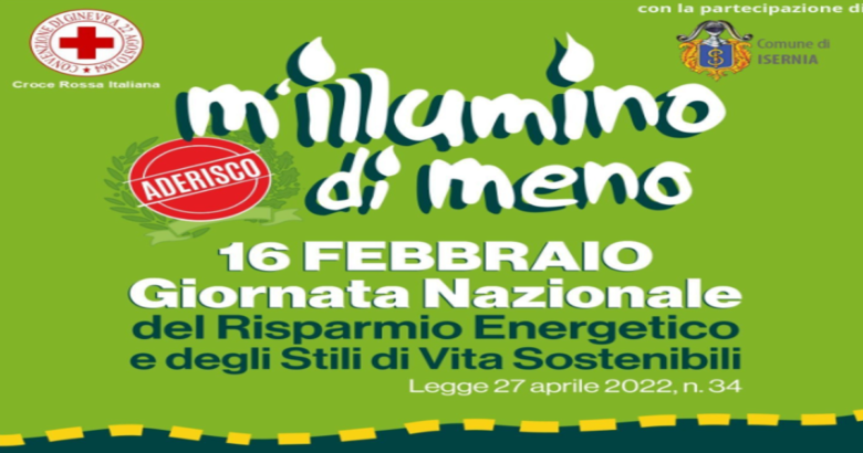In occasione della Giornata Nazione del risparmio energetico e degli stili di vita sostenibili, il Comune di Isernia, insieme al Comitato isernino della Croce Rossa Italiana, ha aderito a “M’illumino di meno”, il progetto di Rai Radio2 che dal 2005, attraverso il programma Caterpillar, si impegna a diffondere la cultura della sostenibilità ambientale e del risparmio delle risorse.