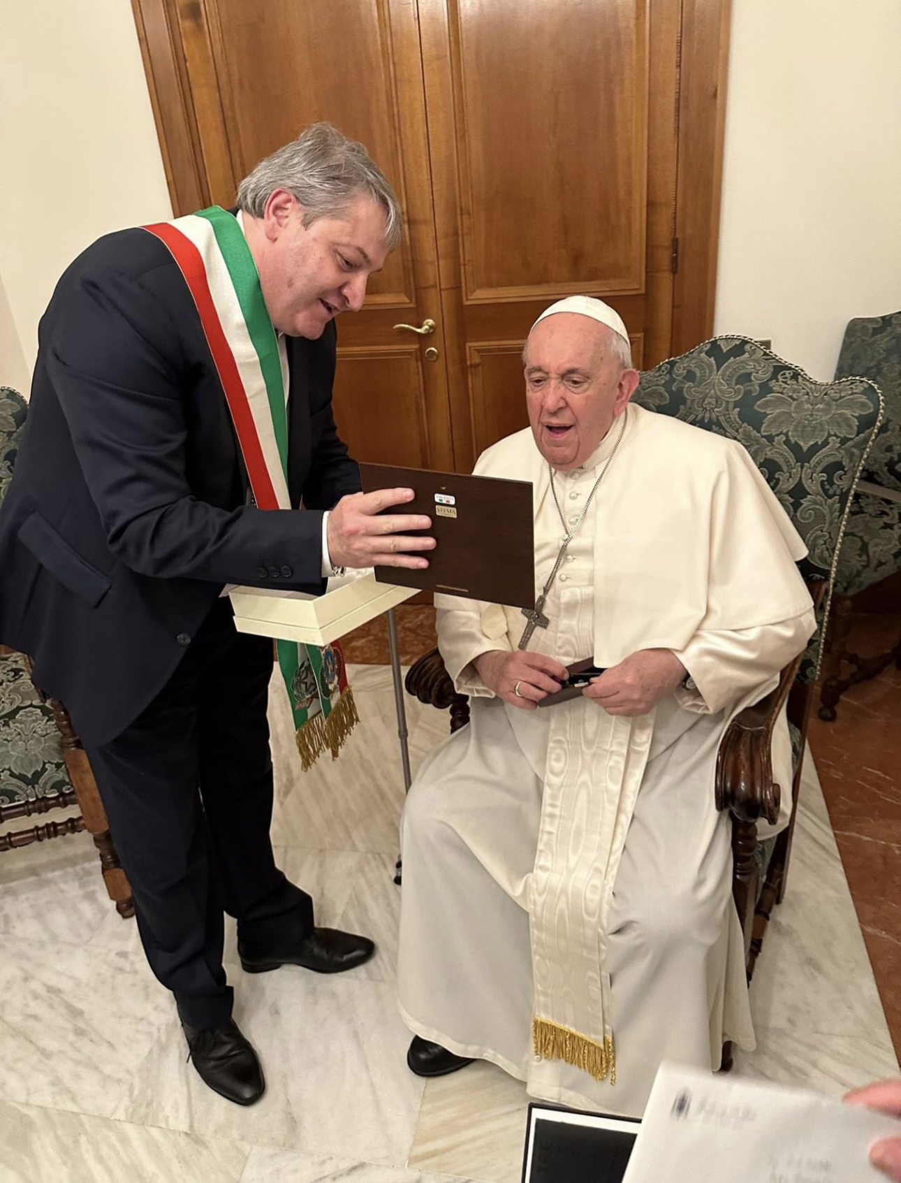 Durante la visita dal Santo Padre, il Sindaco Francesco Roberti ha rinnovato l’invito a recarsi in città a Papa Francesco magari proprio in occasione dell’inaugurazione del futuro villaggio “Laudato Sì”.